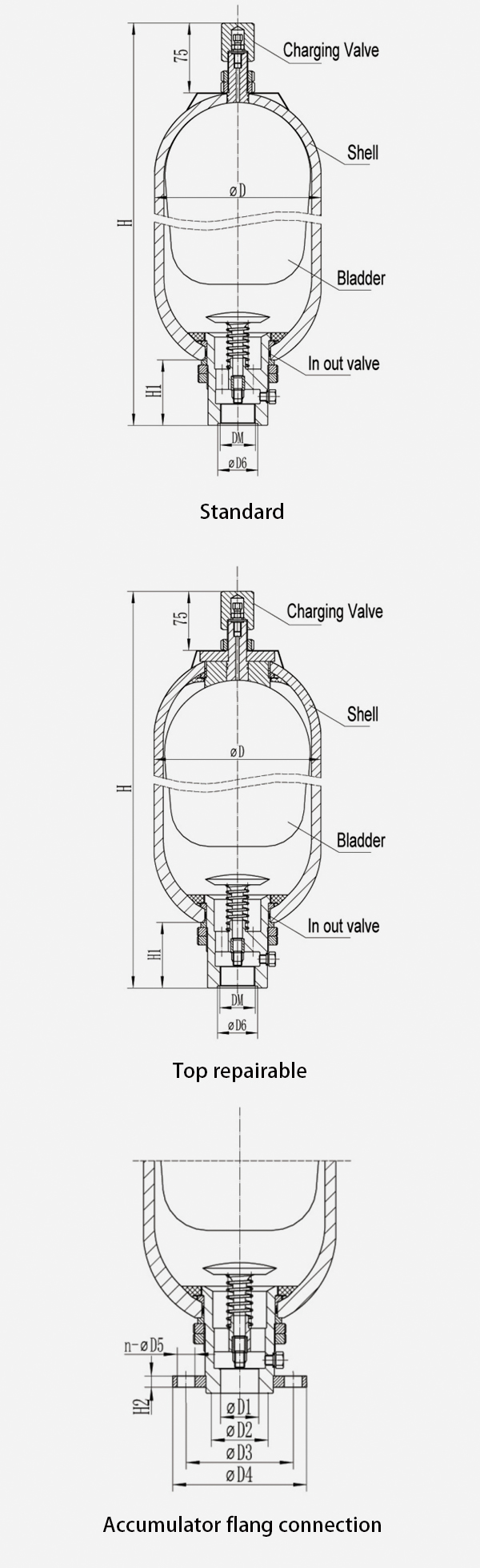 2. Special accumulators not on the list, with increased flowrate or top dismantlement can be ordered accordingly.